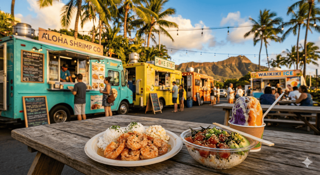This guide gives you the current picture: where the best food trucks near Waikiki are right now, what to order, how much to budget, and a few pro tips to make the whole experience smoother.