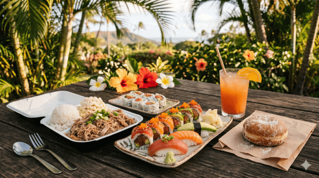 This guide covers 12 local-approved restaurants and food stops near Waikiki, organized by what you’re actually craving. We’ll tell you what to order, what to budget, and which ones are worth a short ride off the main strip.